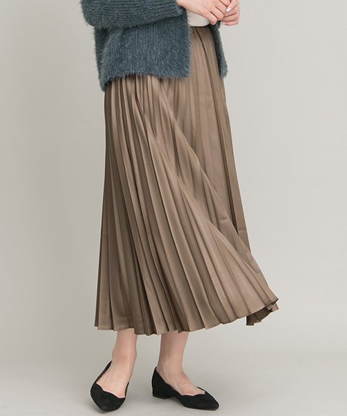 レザーライクなツヤ感がプリーツを美しく惹き立てるスカート。