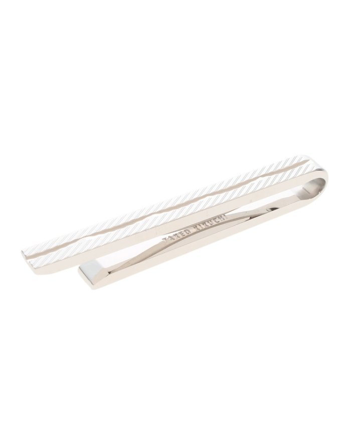表側は長さ5.5?にストライプのダイヤカット、裏側はナロータイにも対応できる4.5?鏡面仕上げ。ワンポイントのスワロフスキー(R)・クリスタル付き。