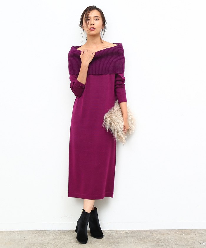 大人の女性らしさが漂う細身シルエット。オフタートルがかもし出すゆったりとした優しい雰囲気も魅力。ボディはしなやかなハイゲージ、オフタートル部分は畦編みで組み合わせた、エフォートレスなオフタートルワンピ。スラッとした I ラインに、さりげなくウエストに絞りをいれることで、より女性らしさが引き立つシルエットに仕上げました。1枚でサラッと着こなすのはもちろん、デニムにレイヤードして今年らしくカジュアルダウンしたコーデもオススメです。