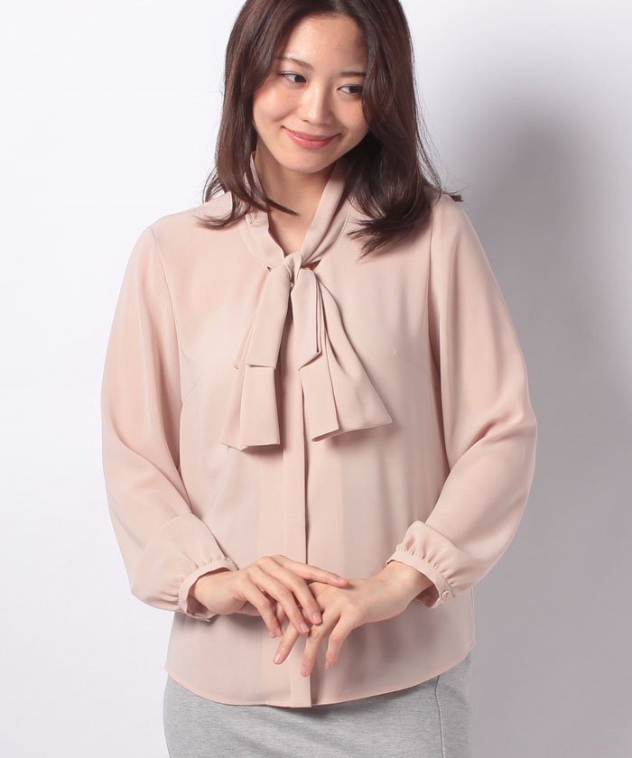 フロントできゅっと結んだボウタイリボンが、ボリューミーなアクセントになったシフォンブラウス。しなやかな落ち感がエレガントな、ジャケットインにも最適なアイテム。気品をキープしているから、セレモニーにもマッチしてくれるはず。