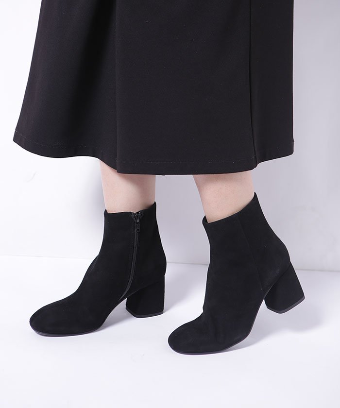 丸みのあるラウンドトゥのフォルムが愛らしいショートブーツ。滑らかなスエード素材で仕上げたエレガントなルックスも魅力的。トレンド感のある太めのチャンキーヒールは安定感があり、高さを感じさせない履き心地が楽しめます。秋冬気分を高めてくれる深みのあるカラーリングにも注目。サイドジップで楽に着脱ができ、デザイン性だけでなく実用性にも優れた一足です。
