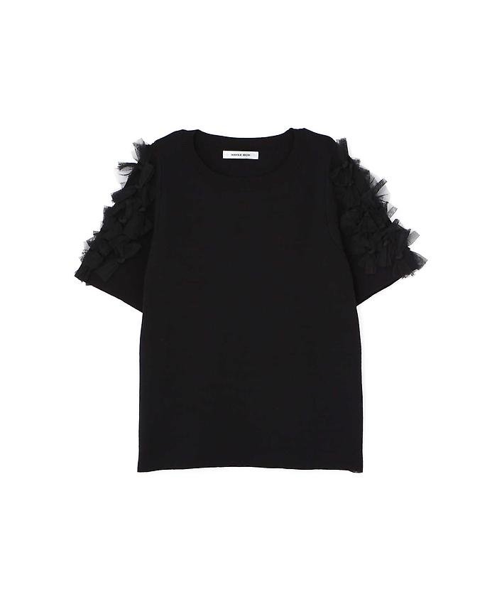 滑らかな女性らしいシルエットを演出する半袖トップスです。両袖に散りばめたリボンモチーフは着るだけでスイートで女性らしいスタイリングが楽しめ、大人可愛い印象に。今年トレンドのボリュームスカートやワイドパンツと好バランスでコーディネート出来る一枚です。