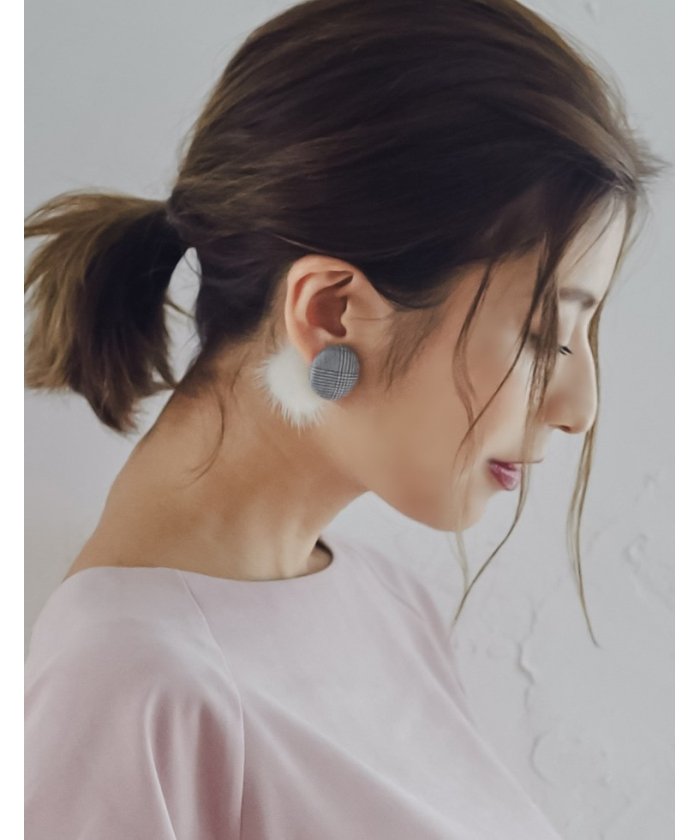 チェックボタンファーピアス