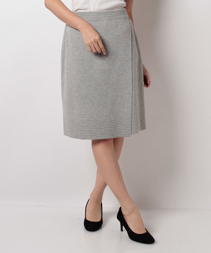 柔らかなアンゴラブレンドのラップ風タイトスカート。ウエストとヘムに横リブ加工を施し、さりげないアクセントに。カラーニットやブラウスなど、鮮やかなトップスを合わせても素敵です。