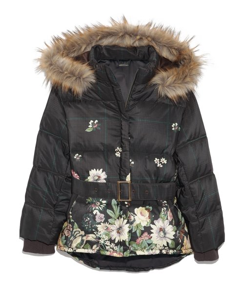 身体を優しく包み込んでくれる、ほっこりとした着心地の中綿コート。ベルト付きなのも、嬉しいポイント。カジュアルアウターにエレガントなフラワープリントをのせるという発想で、コーディネートをワンランク上へと導きます。