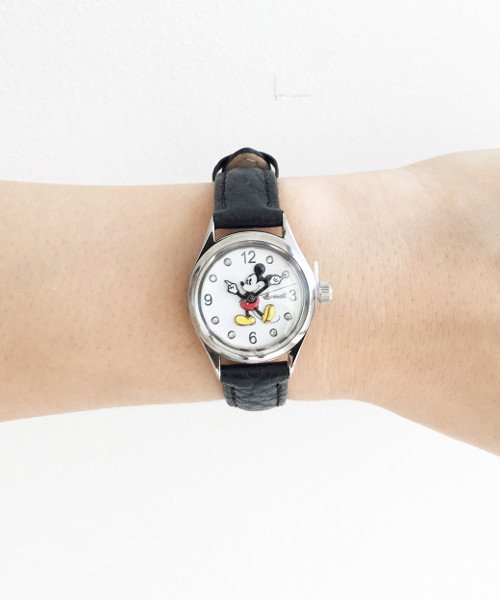 レトロでかわいい腕時計が入荷しました。世界ではじめてウォルト・ディズニー氏から依頼を受け1931年に生産されたのが、インガソール社のミッキーマウス・ウォッチ。文字盤の中央には、元祖ミッキー時計のしるしとなる“Ingersoll”のロゴが入っています。数字の間にはきらきらと輝くビジューを採用。さらに、クラシックタイムコレクションにぴったりな、オールドミッキーが刻印されていて、遊び心いっぱいのデザインです。ミッキーの腕が針になっているので、時間を確認するたびにほっこり。レザーベルトなので、使えば使うほど腕になじみます。世代を問わず、長く愛されているミッキーは、プレゼントやおそろいウォッチとしてもおすすめです。カラーはシックな雰囲気が高まるブラックとやわらかな印象のブラウンの2色です。