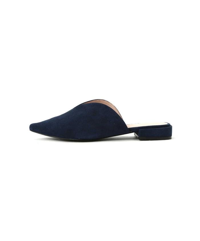 今シーズンも人気のあるフラットミュール。シャープなポインテッドトゥにV字カッティングを施したシャープなデザイン。甲が深めなので脱げにくく、フラットソールで安定感のある履き心地です。デイリーカジュアルからフェミニンなスタイリングまで幅広く楽しめる1足です。