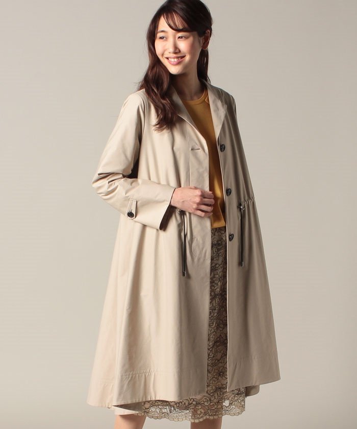 ウエストにドローストリングをあしらったちょっぴりカジュアルなディテールで、サクッと気負わずスタイリングできるコート。ふんわりと揺らめく軽やかさのある素材を使用しているから、季節の変わり目に大活躍の予感。