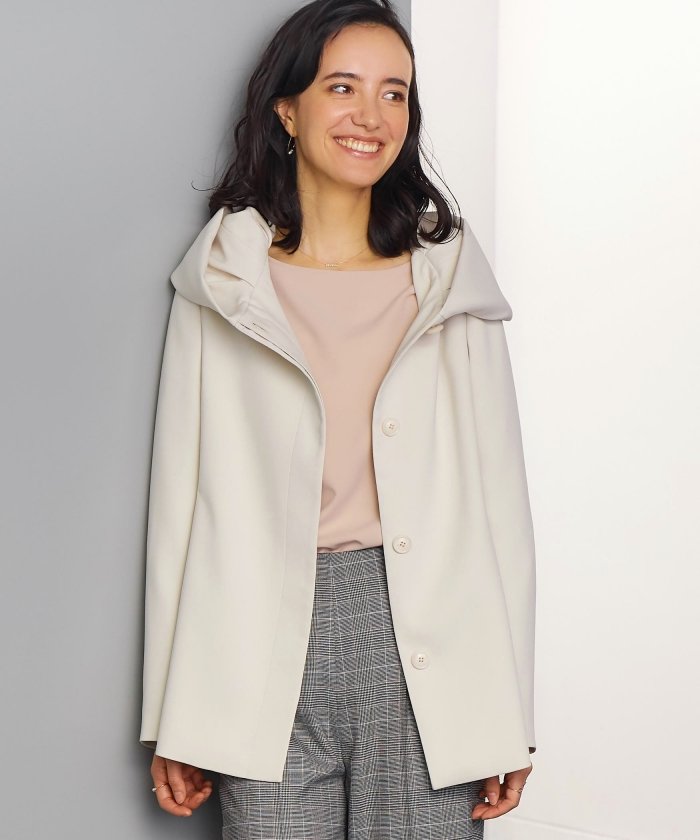ネックまわりのボリューム感が、体を華奢に見せてくれるコートが春素材で登場です。