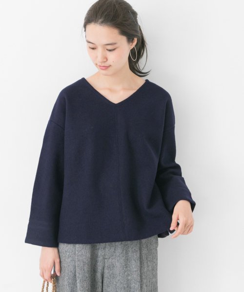 Vネックデザインに程良い身幅を持たせた抜け感のある1枚。目の詰まった圧縮ウール素材は見た目にもあたたかで保温性が抜群。この冬注目のアイテムです。