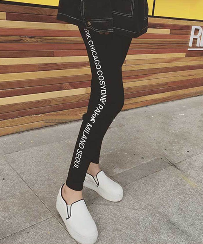 サイドに英字ロゴプリントデザインでおしゃれ&スポーティなレギンスパンツ