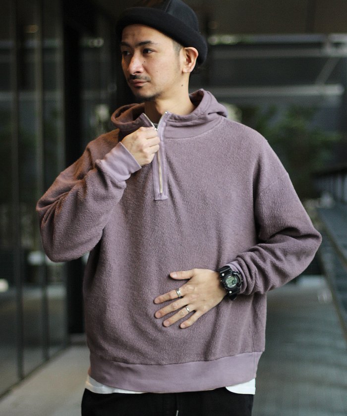 パイル地をあえて表にした今期らしいアレンジを効かせたハーフジップパーカー!
