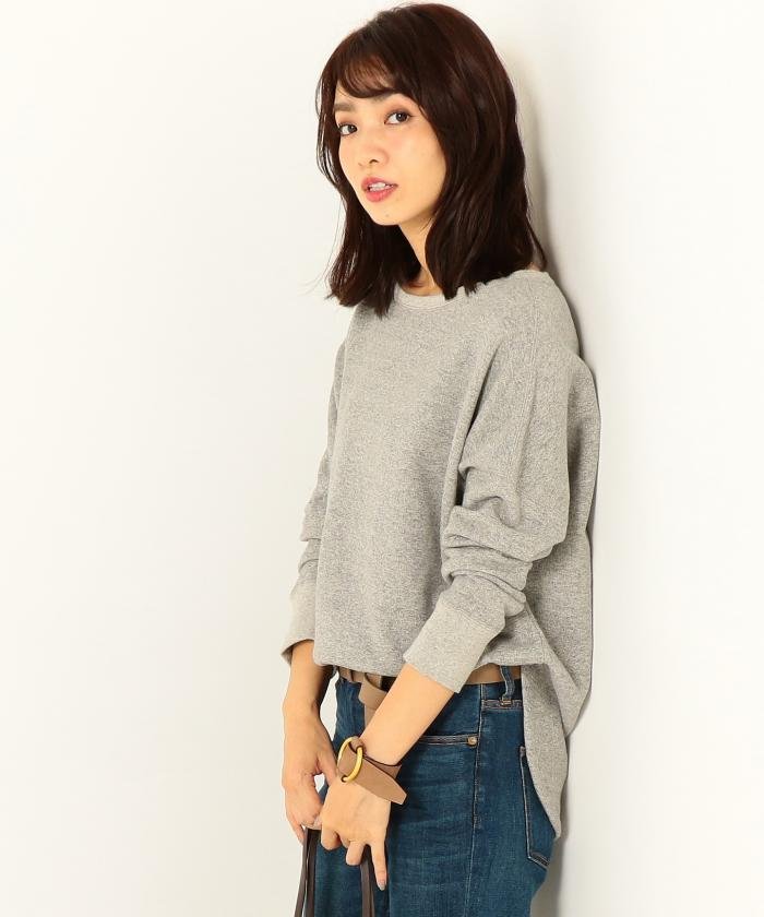 2017AWカジュアルなメランジ素材×こだわりのディテールの、ラフ過ぎない大人のカジュアルカットソー【デザイン】少し後ろに抜けたようなニュアンスになる様、裾に前後差を付けたデザインのカットソーです。襟ぐりをボートネックのように横に開けることで、リラックスした表情の中にも、女性らしい雰囲気をあたえてくれます。袖口にリブを使用し、ディティールはよりカジュアルに。デニムやコーデュロイなどカジュアルなボトムスとのスタイリングがおすすめです。【素材】裏毛部分は非常に柔らかく、ソフトな風合の綿の糸を使用し、あたたかみはありつつもドライなタッチ感に仕上げました。表地と裏毛部分の繋ぎ糸には、度目を詰まらせ、膨らみを出しています。