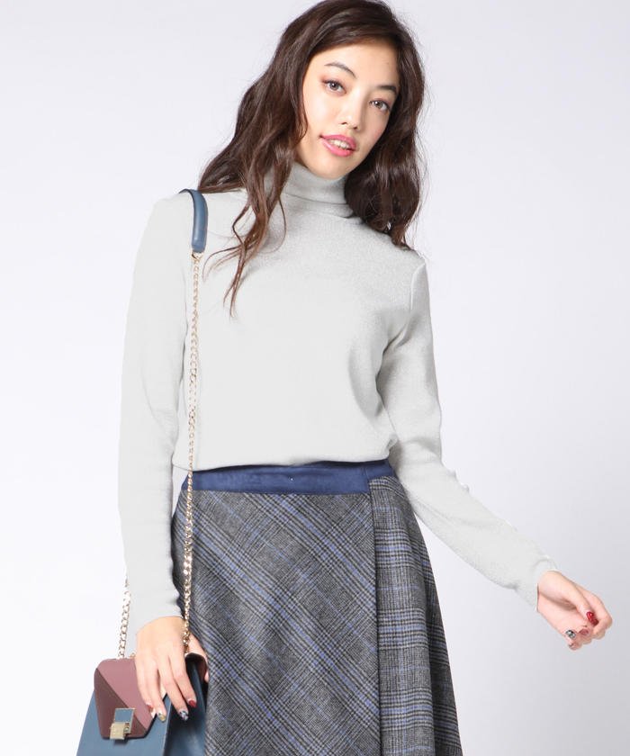 【LOOK BOOK 11月掲載商品】定番のハイゲージタートルネックニットにシャイニーなラメ糸を混ぜて今年らしいルックスに仕上げた一枚。合わせるだけで華やかになるラメタートルはコーディネートのアクセントにもぴったりです!特に街がイルミネーションでキラキラとしてくるクリスマスシーズンには、絶好のおしゃれアイテムとして活躍が期待できますね♪ラメ糸はこだわりの柔らかめ素材を使用しているので、チクチク感が気にならず快適にお召しいただけます。形がベーシックなので挑戦しやすく、ワードローブに取り入れやすいのもGOOD!シルエットは身体に沿うコンパクトめな形にしているので、スカートやワイドパンツにINしてお召しいただくと美しくお召しいただけます。ワンピースのインナーとしてもおすすめですよ◎!カラーはシルバーとゴールドの2色展開です。