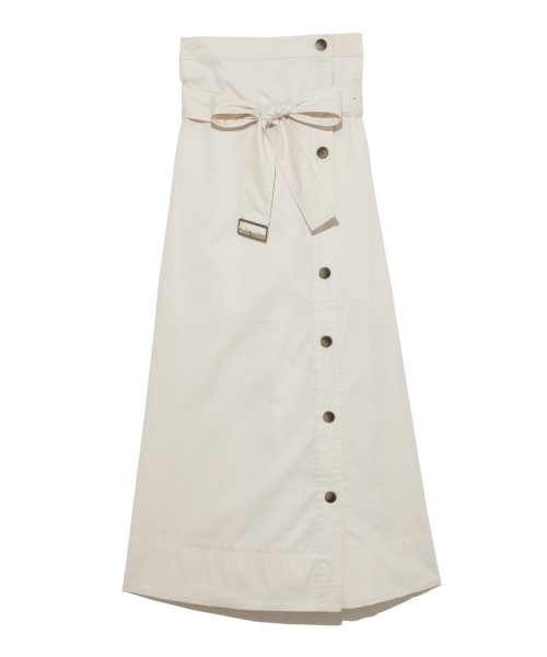 本格的なトレンチコートに使われるようなツイル素材を使用しています。アイボリーとベージュはシンプルなプレーン、ギンガムチェックはサイズ違いで切り替えて旬顔に。ベアトップワンピースとしても、スカートとしても使えるうれしい2WAYデザインです。本格的なトレンチコートを彷彿とさせるディテールを大胆に遊んだバランスが、おしゃれ心をくすぐるアイテム。インパクトのあるデザインなので、手持ちのシンプルアイテムを組み合わせるだけで、こなれたおしゃれが完成します。