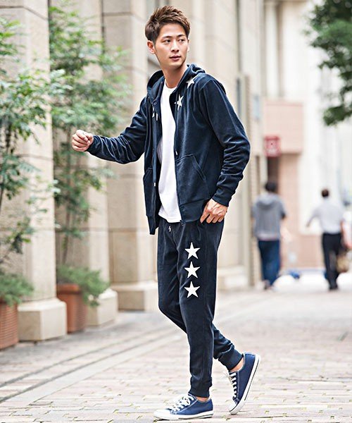 CavariA【キャバリア】星柄ワッペン付きベロアジップアップパーカーセットアップ