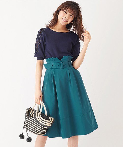 ベルトは取り外し可能なので、ベルトなしでシンプルなフレアスカートとしての着用も◎。