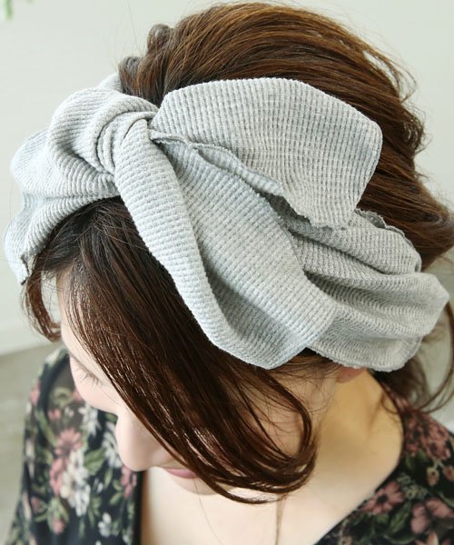 大きなリボンが目を惹くターバンが登場しました。綿混素材のワッフル地は柔らかく通気性も抜群♪リボンにするための専用の通し穴を取り付けているので、リボン結びが苦手な方でも楽々◎ご自身のお好みのサイズ感でご着用いただけます。いつものコーデの仕上げに!