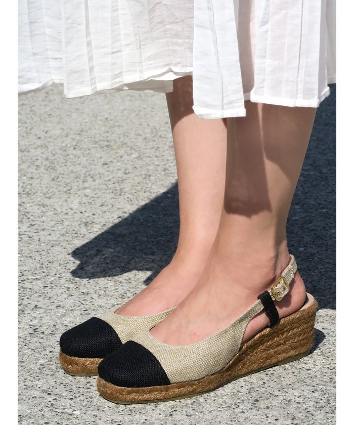 ジュートサンダルで大人気のスペインブランド「gaimo(ガイモ)」のエスパドリーユサンダル。スクエアトゥ×スリングバックと注目のトレンド要素が詰め込まれた1足◎クラシカルなバイカラーが今年らしく、コーディネートのアクセントに。ウェッジソールなので、履き心地も安心です。