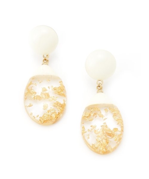 箔の美しい表情がたっぷりと味わえるドロップピアス。ボリューム感がありながら、肌に溶け込むようなゴールド箔が印象的。きれいめからカジュアルスタイルまで幅広いスタイリングと相性抜群なアイテムです。