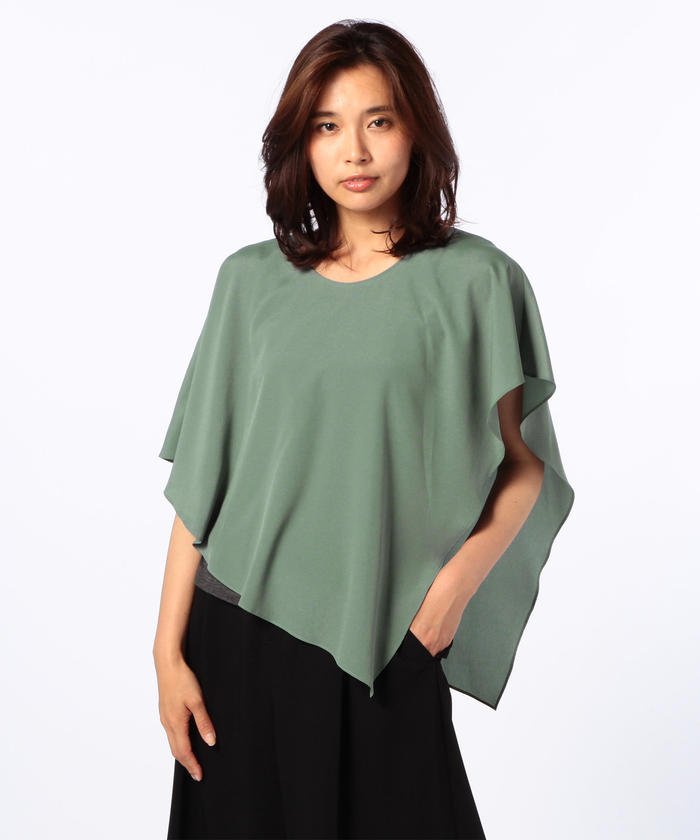 アシンメトリーなデザインがモード感のあるブラウスです。シンプルながらも美しいデザインとシルエットが洗練された印象のアイテム。フレアな袖なので夏にもぴったりの涼しげな雰囲気があります。生地感も品があり、着るだけできちんと感が出るのでオフィスシーンにもおすすめです。