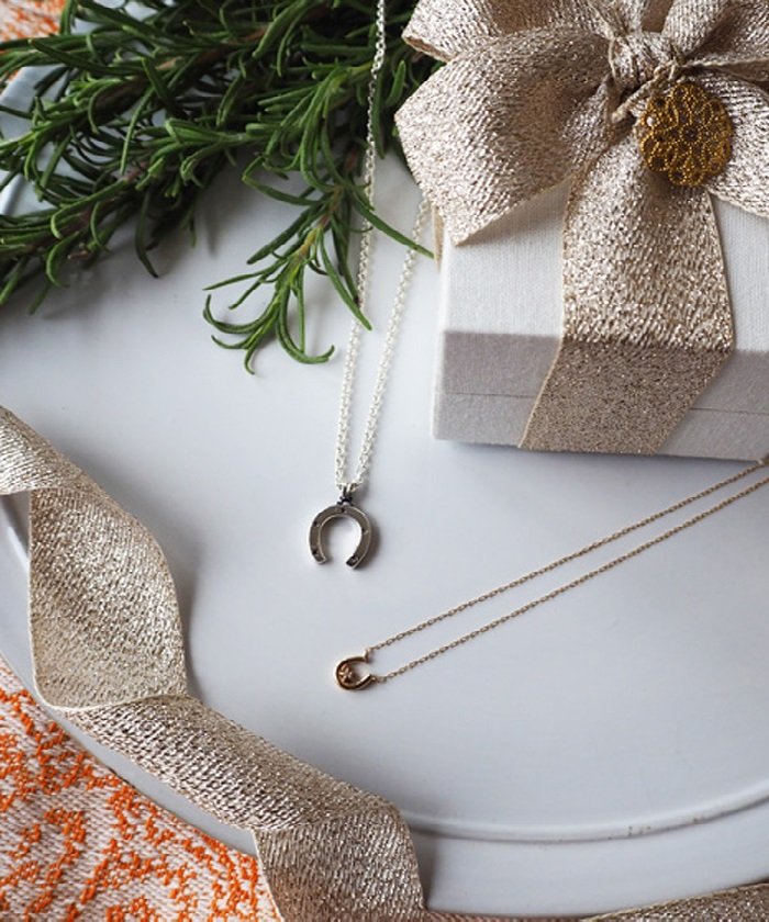 ≪WEB限定≫馬蹄モチーフが印象的なペアネックレス。Men'sの下向きの馬蹄は、受け止めた幸せが逃げないようにふたをするラッキーモチーフ。磨き上げられたシルバーの面にはさりげなく星があしらわれ、Wonen'sとリンクするデザイン。凛とした印象のホワイトカラーのチェーンに程よいサイズ感のトップのネックレスはデイリーに着けやすいのも嬉しいポイント。Women'sの上向きの馬蹄は、幸せを受け止めるラッキーモチーフ。丸みをおびた優しいフォルムの馬蹄の中に星を閉じ込めたような遊び心あるデザインが魅力的。イエローゴールドカラーで描いた星の中にキラリと輝くダイヤモンドがワンポイントに。お守り用に肌身離さず身に着けていたいネックレスです。二人で沢山の幸せを受け止め、それを守っていけますようにという願いが込められたペアネックレスです。