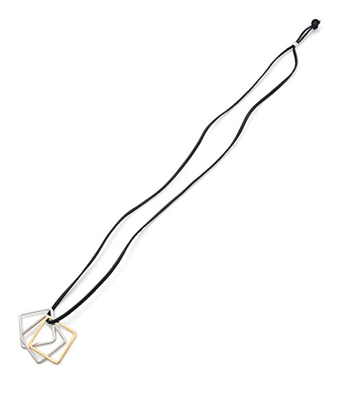 ペンダントトップを3連に重ねて異なるカラーにデザインしたスクエア革紐ネックレス。