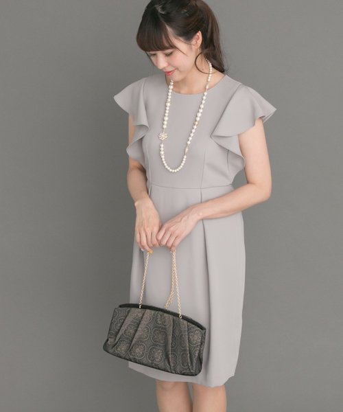 甘くなりすぎない大きく波打つお袖のフリルは、ウエスト切替デザインのシンプルなドレスに映えて華やかな印象に◎