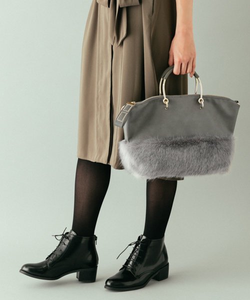 ファーとフェイクレザーの切り替えが可愛いトートバッグ。同色での組み合わせなので派手になりすぎず、ほどよい存在感がどんなスタイリングにも合わせやすいバッグに。金具のハンドルにジップのストラップにもさりげないスタッズなど細部にまでこだわったデザインも魅力。荷物もしっかり入るので荷物が多めの方にもオススメですよ!