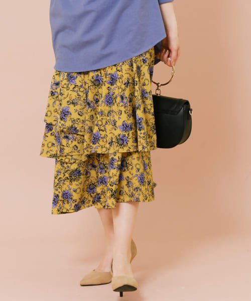 KBF+ フラワープリントボリュームスカート