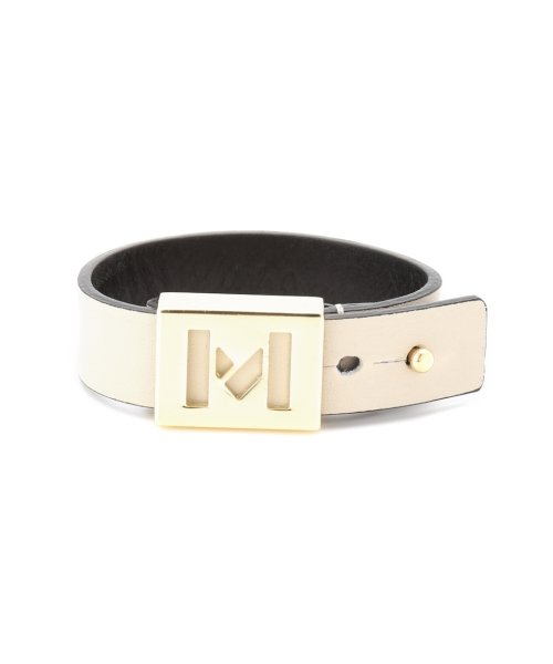 リアルレザー素材。洗練された印象のブラック、ホワイトのほか差し色として重宝するグリーンの3色を揃えました。春夏の着こなしにピッタリな存在感のたっぷりのバングルが登場しました。バックルには、ブランドの「M」を刻印しアクセントに。使い込むたびに表情を変えていくレザー素材で、長く愛用できるアイテムです。