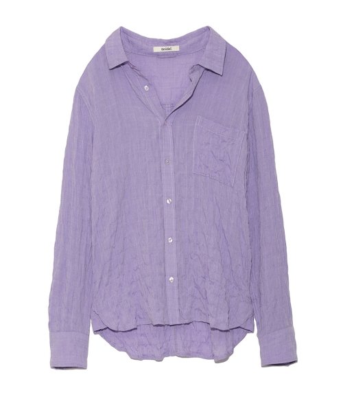 シルク混のリッチな甘織り素材を使用しています。ふっくらと映えるよう、生地にくしゅっとなるストレッチ糸を配しているところも特徴的。肌触りが優しく、直接触れても心地よい風合いです。ややオーバーシルエットに仕上げることで、大人の余裕が香る雰囲気に。袖を無造作にロールアップするとこなれ感もさらにアップ。フロントの裾をボトムにインして、衿を後ろに抜いて着こなすと抜け感が出てGoodです。
