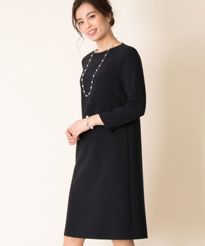 気品に満ちたミドル丈のワンピース。露出をセーブした袖丈と、程よくよりそうフォルムが品格アップを後押しします。しなやかなストレッチ素材も褒められるポイント。セレモニーにも相応しい1枚です。